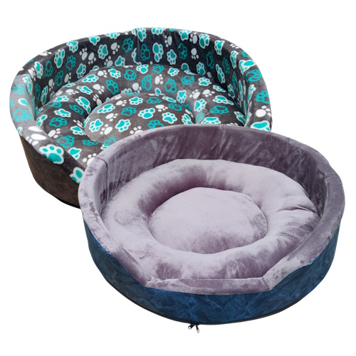 Cama Redonda Clásica de Lona y Tela Polar Raza Extra Grande